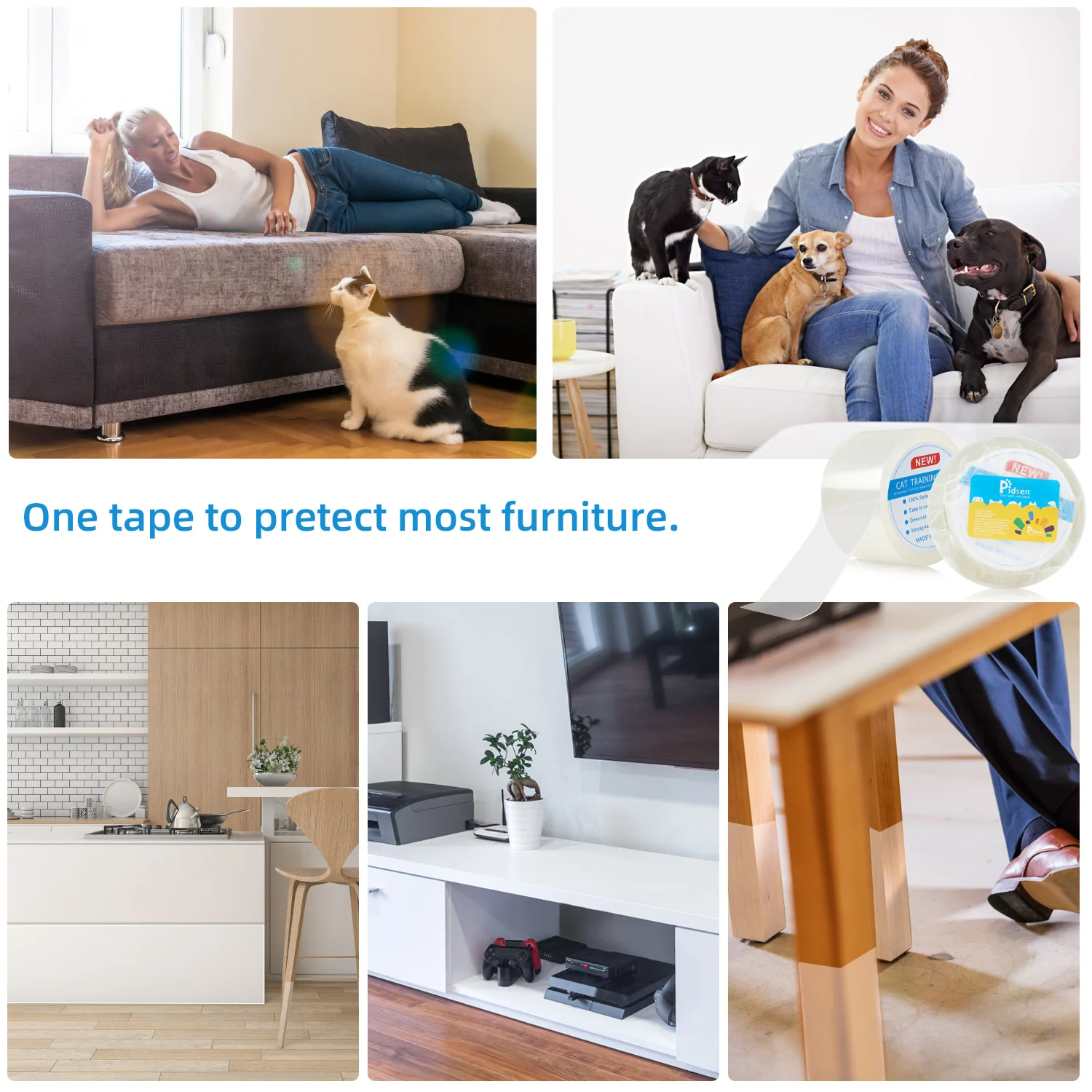 Maximum protection of furniture: Ideal for protecting your furniture from small claws. Just peel, cut and paste where necessary. The invisible adhesive surface it creates will prevent cats or kittens from scratching, and both sizes provide more coverage and prevent your cat from scratching your furniture.