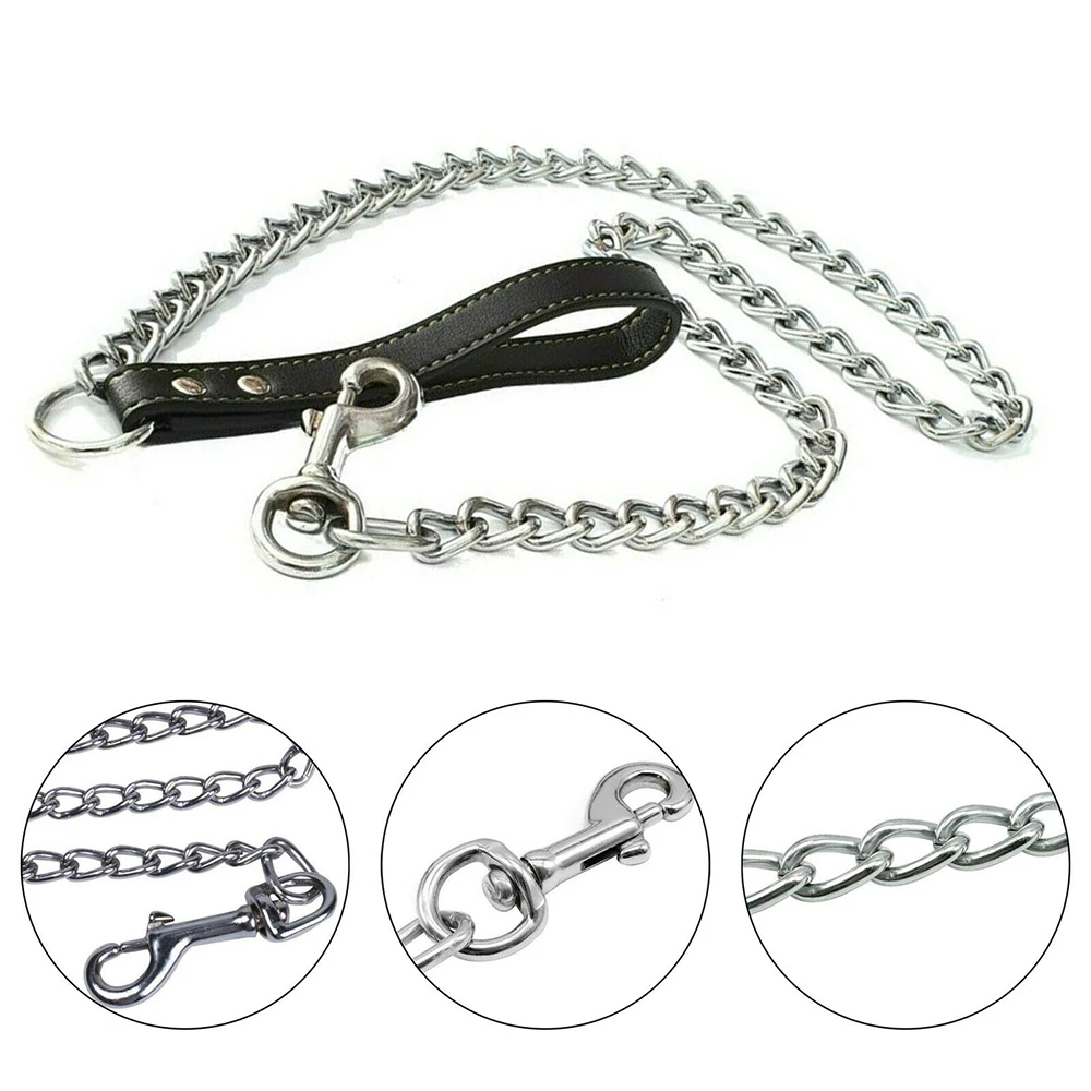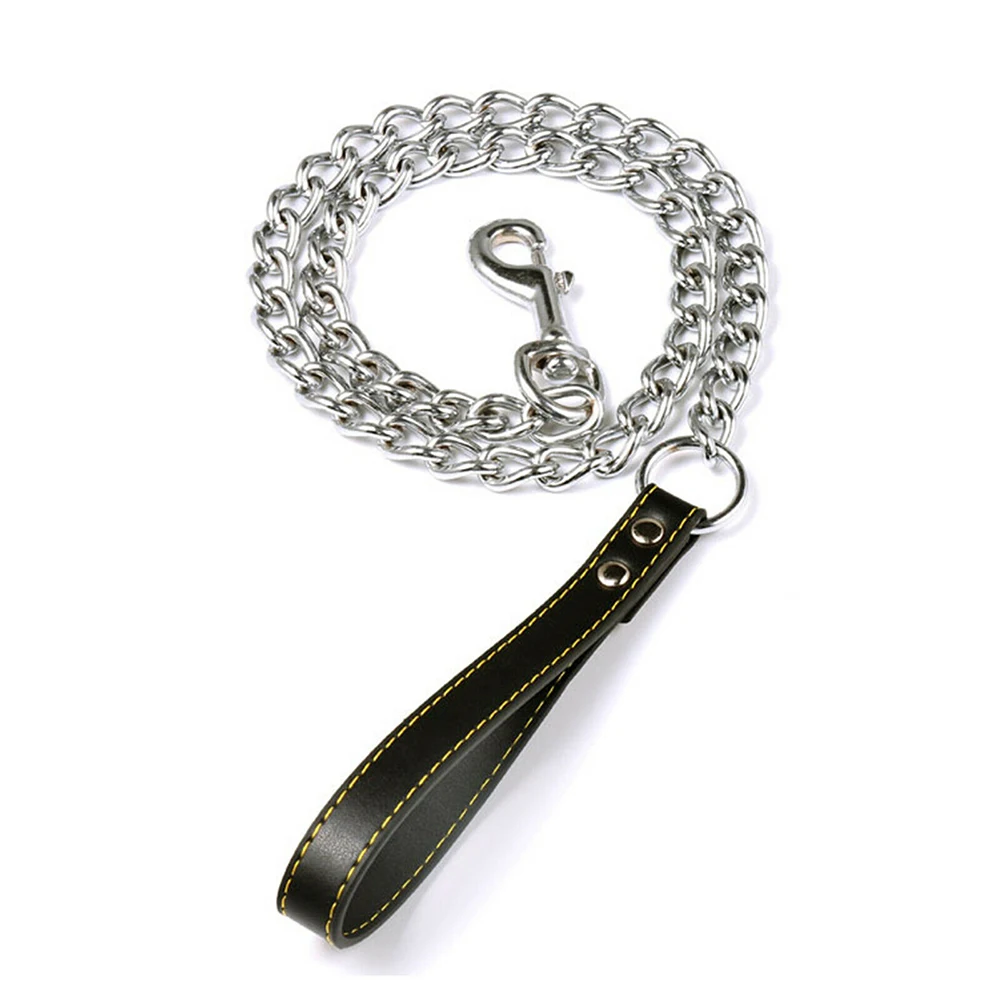 Heavy Duty Metal Chain Dog Lead With Leather Handle Long Strong Control Leash Outdoor Pet Traction Rope Anti Bite Chain Supplies