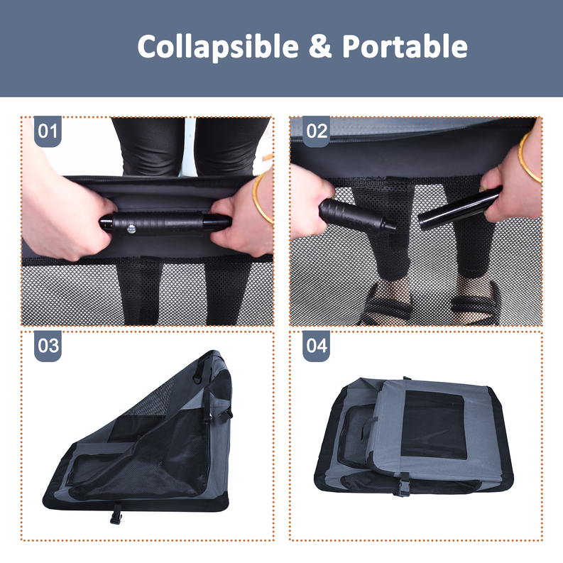 JESPET Soft Pet Crates Kennel, 3 Door Soft Sided Folding Travel Pet Carrier with Straps and Fleece Mat for Dogs, Cats, Rabbits, Indoor/Outdoor Use with Grey, Blue & Beige, Black