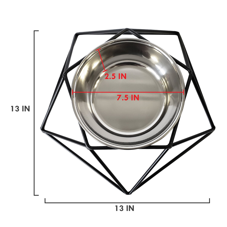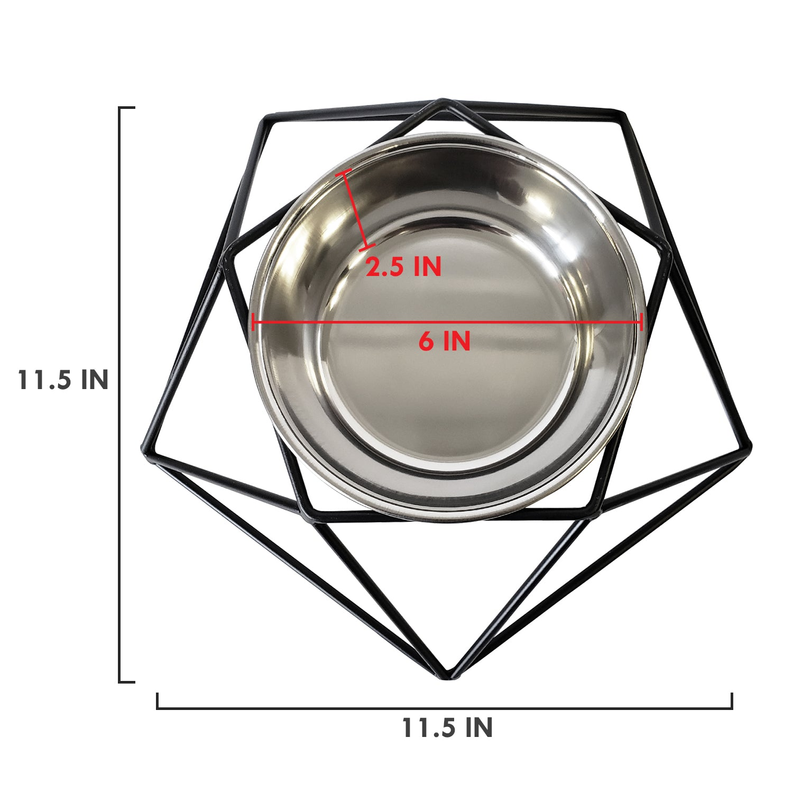 Modern Geo Black Elevated Single Dog Feeder with Stainless Steel Bowl