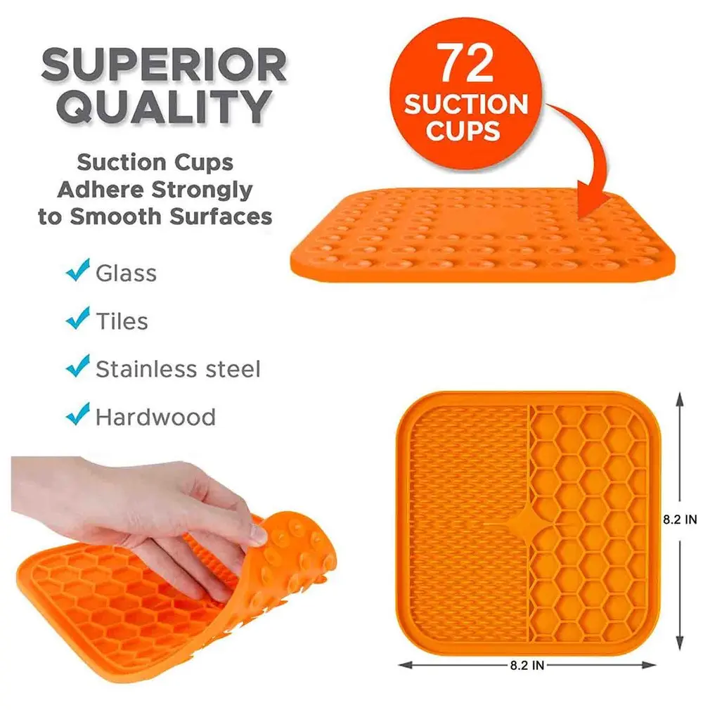 This pad has a unique side slot design to prevent food from spilling. It can be used when pet bathing, grooming.