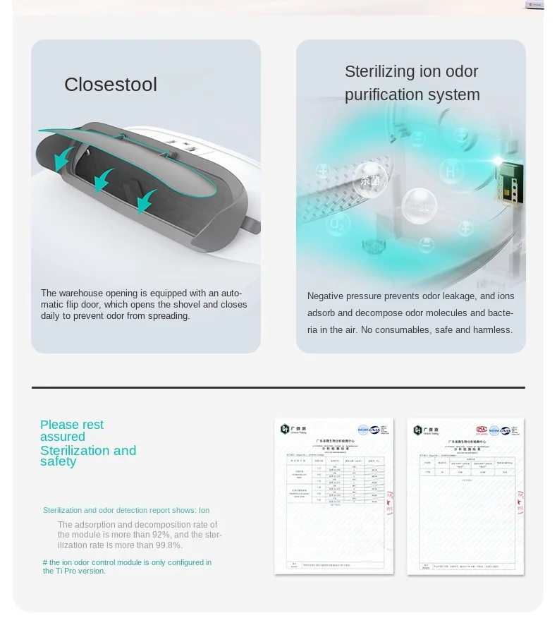 - Innovative Deodorization Technology self cleaning cat litter box adopts innovative electronics Ionic deodorizer, which is safe and non-toxic, no need to replace any consumables. The Ionic deodorizer will start working after your cat has finished pooping, reducing odor emissions into the room.
