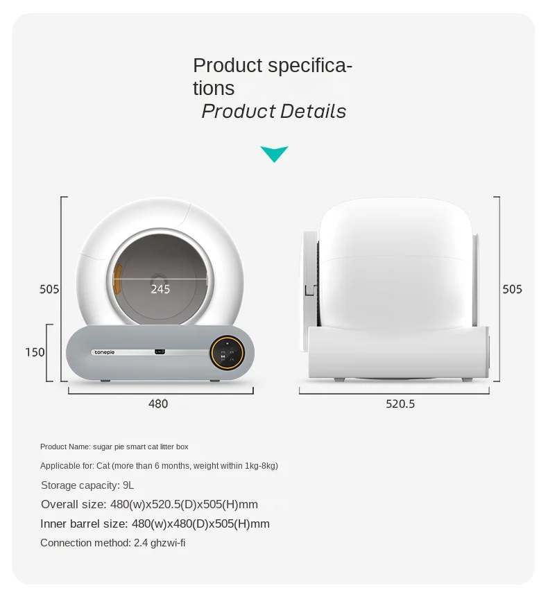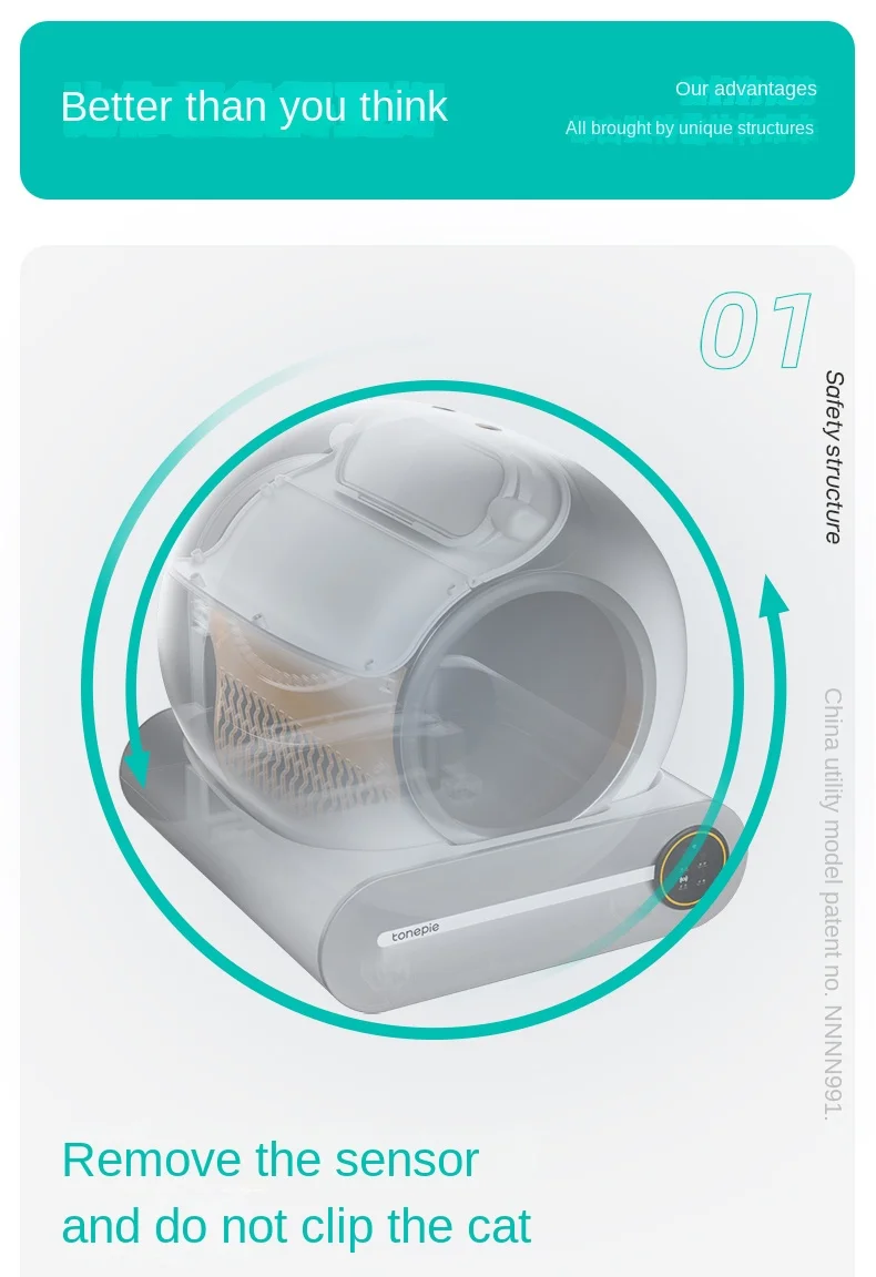 Tonepie Smart Cat Litter Box Automatic Cat Toilet Fully Enclosed Electric Cat Self Cleaning Litter Box Caixa Areia Gato Fechada