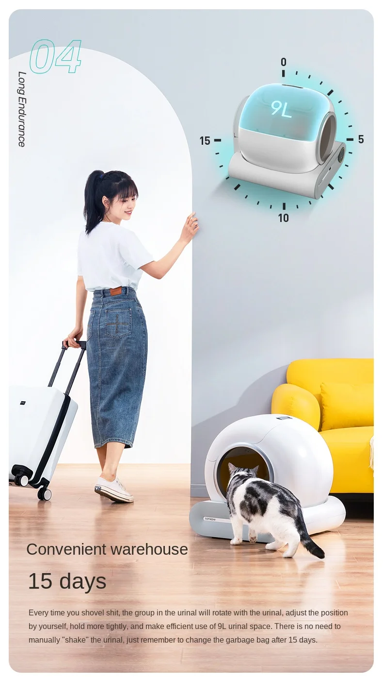 - APP Control -automatic self cleaning cat litter box can be connected to the network to use the app for remote control, when you go travel and can still have the litter box cleaned from wherever you are. And this app lets you know the cat's usage data and when the litter box is full. Moreover, you can make more detailed settings for cleaning mode or your cat litter type etc.